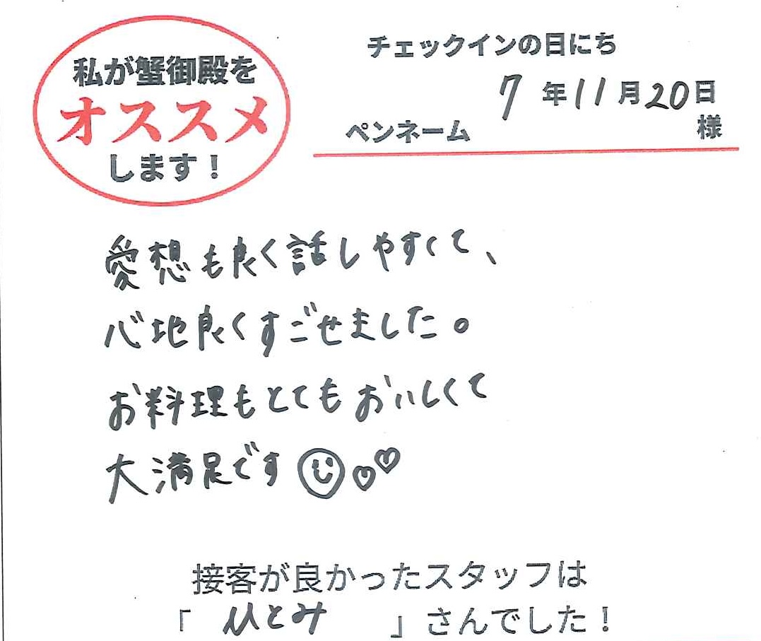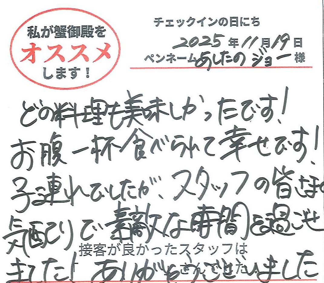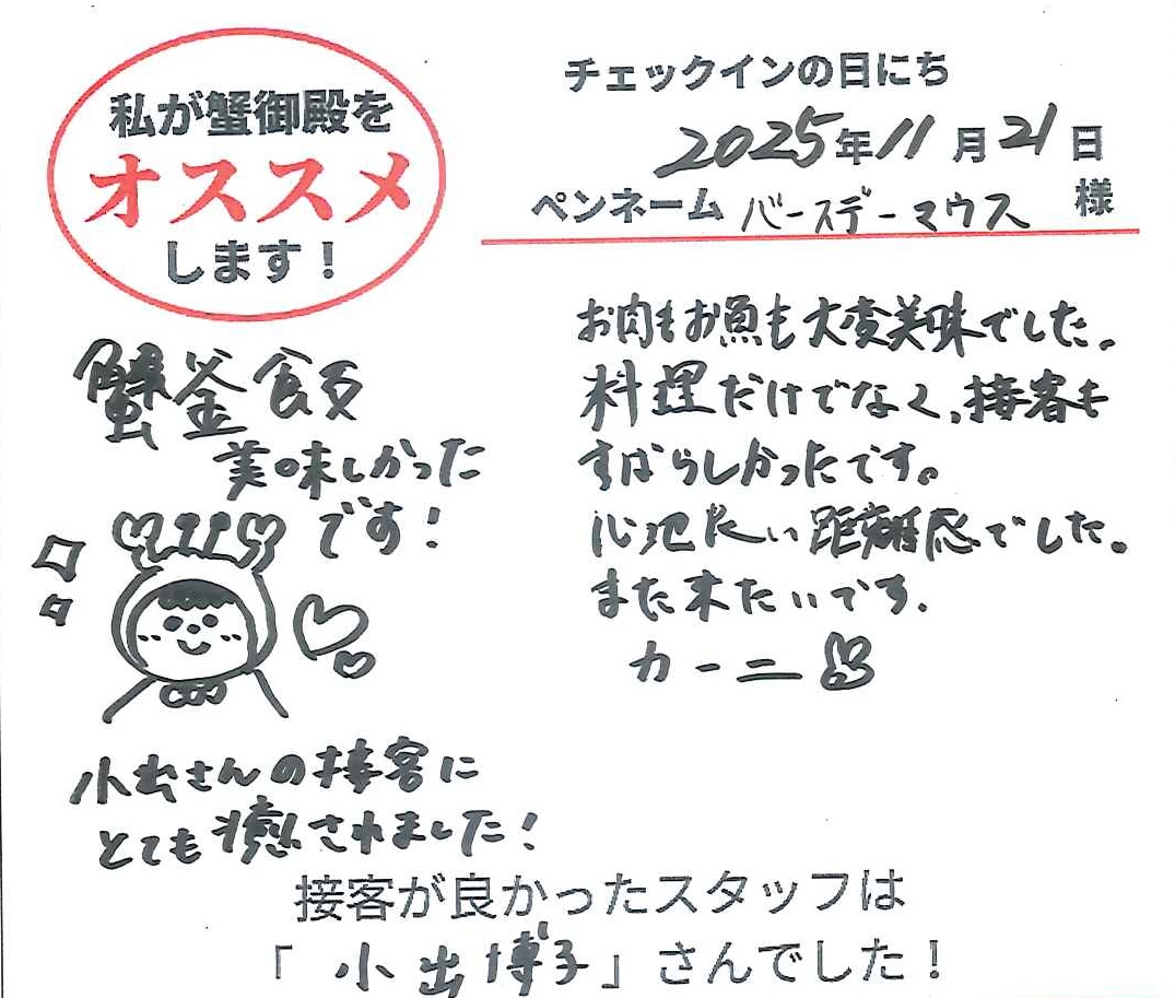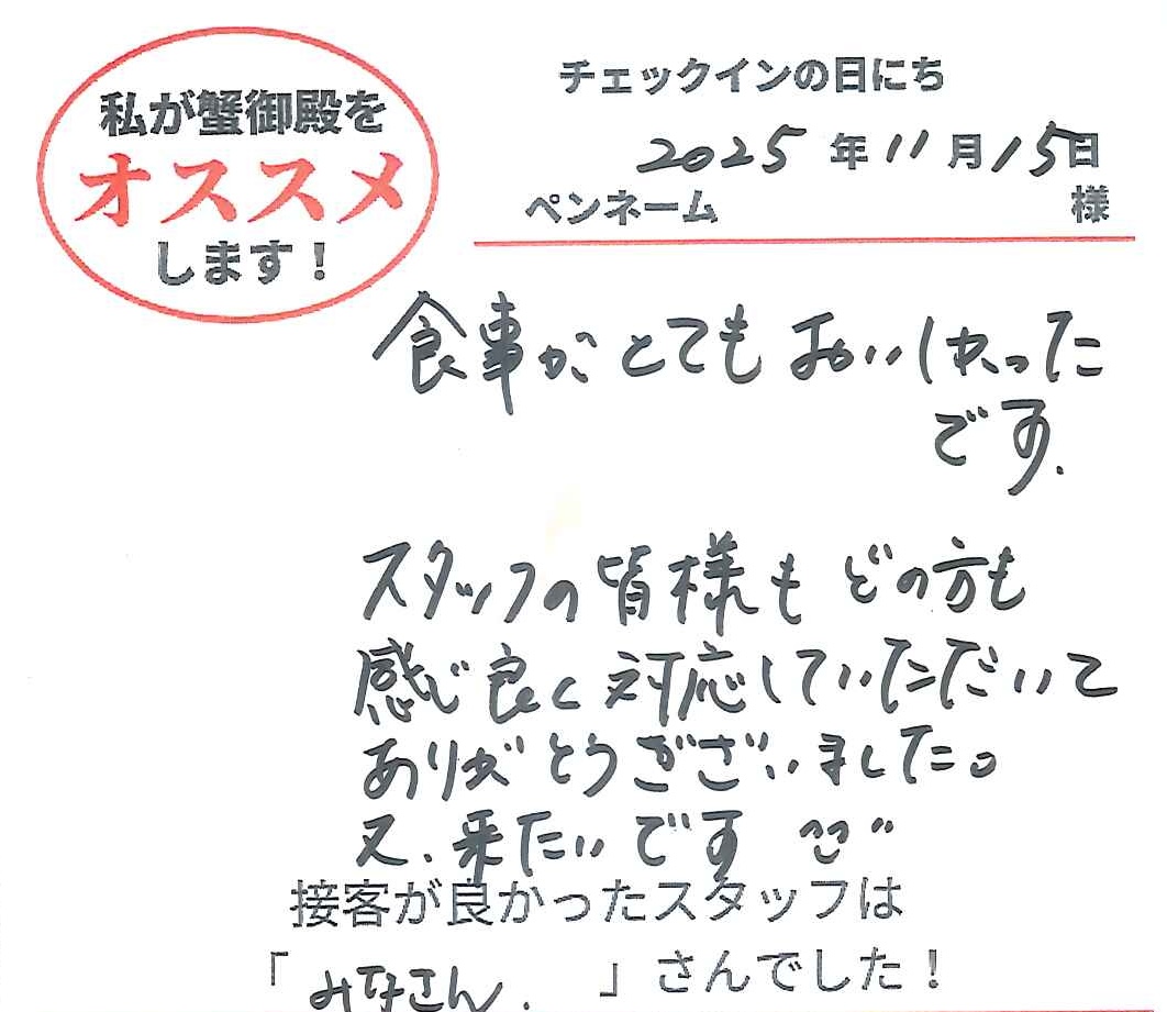 2025年11月20日ご宿泊 ペンネーム「しが」様View More