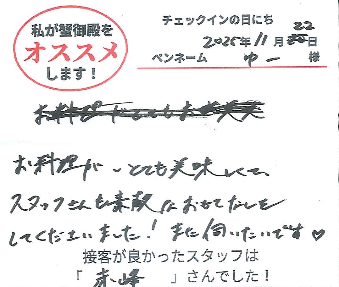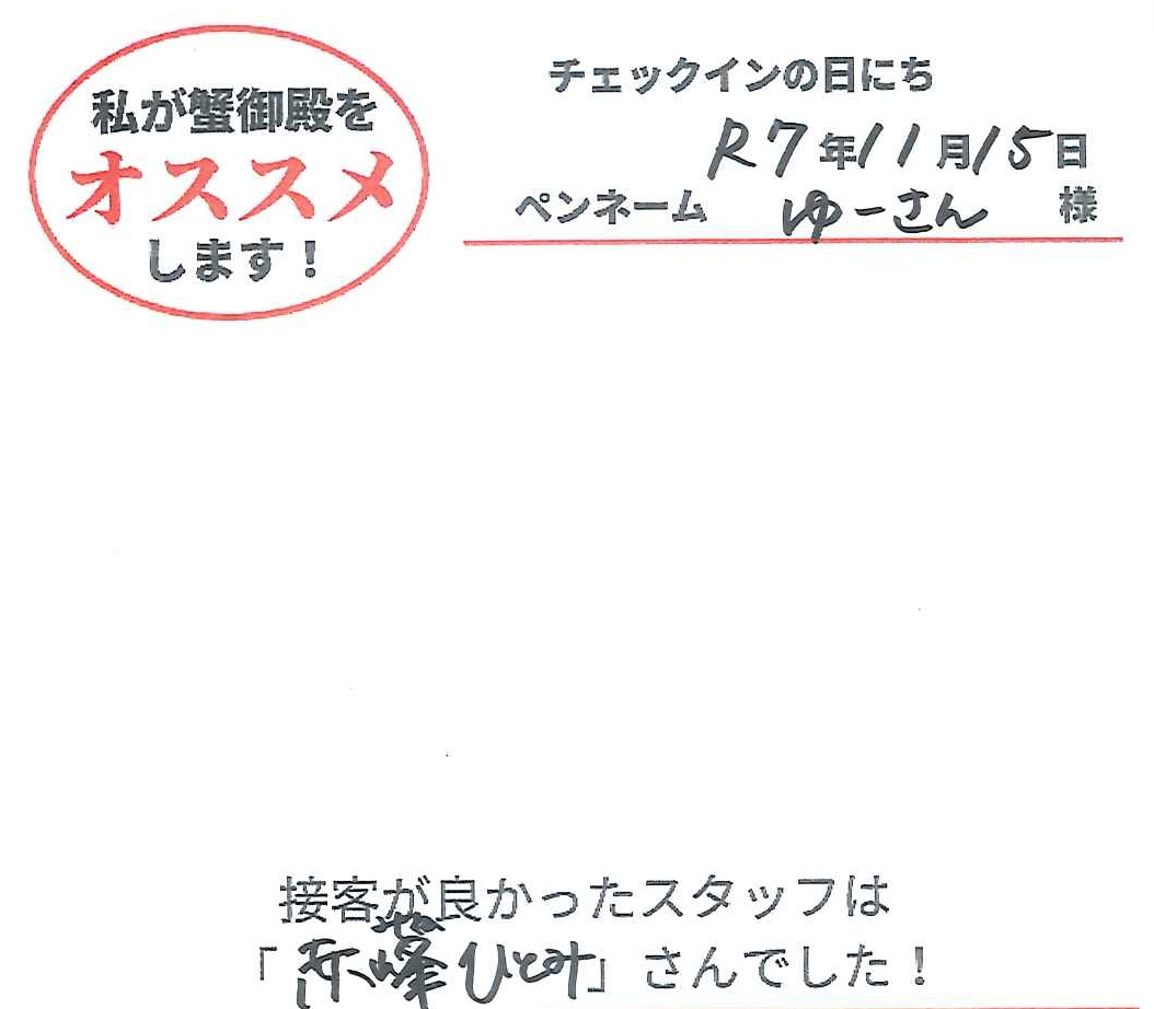 2025年11月15日ご宿泊 ペンネーム「ゆーさん」様View More
