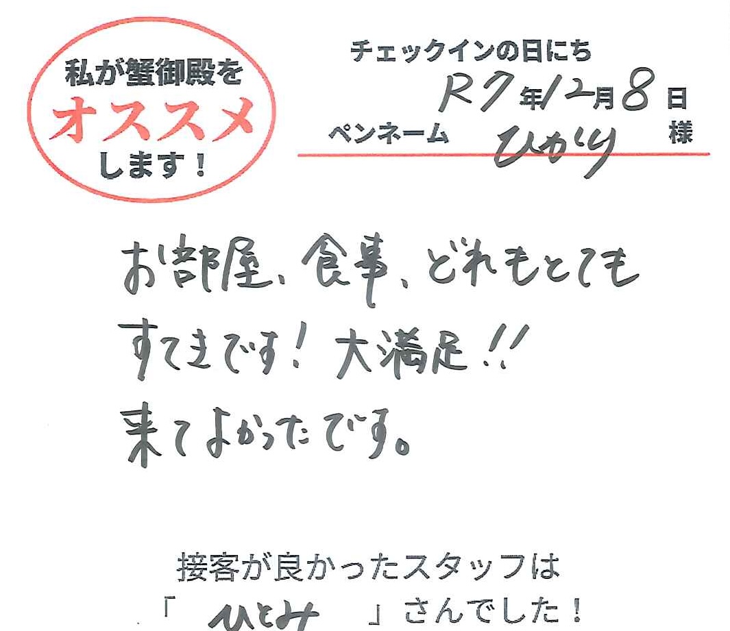2025年12月8日ご宿泊 ペンネーム「ひかり」様View More