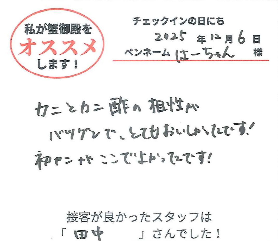 2025年12月6日ご宿泊 ペンネーム「はーちゃん」様View More
