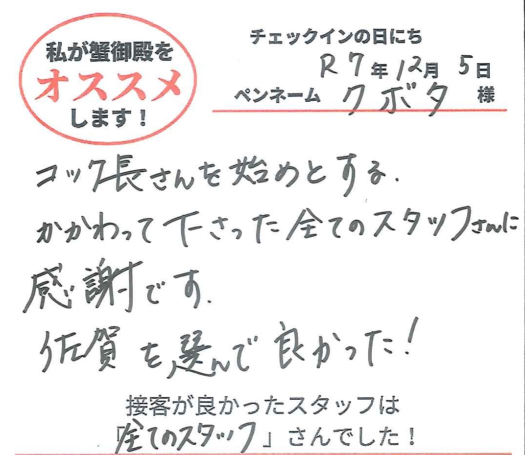 2025年12月5日ご宿泊 ペンネーム「クボタ」様View More