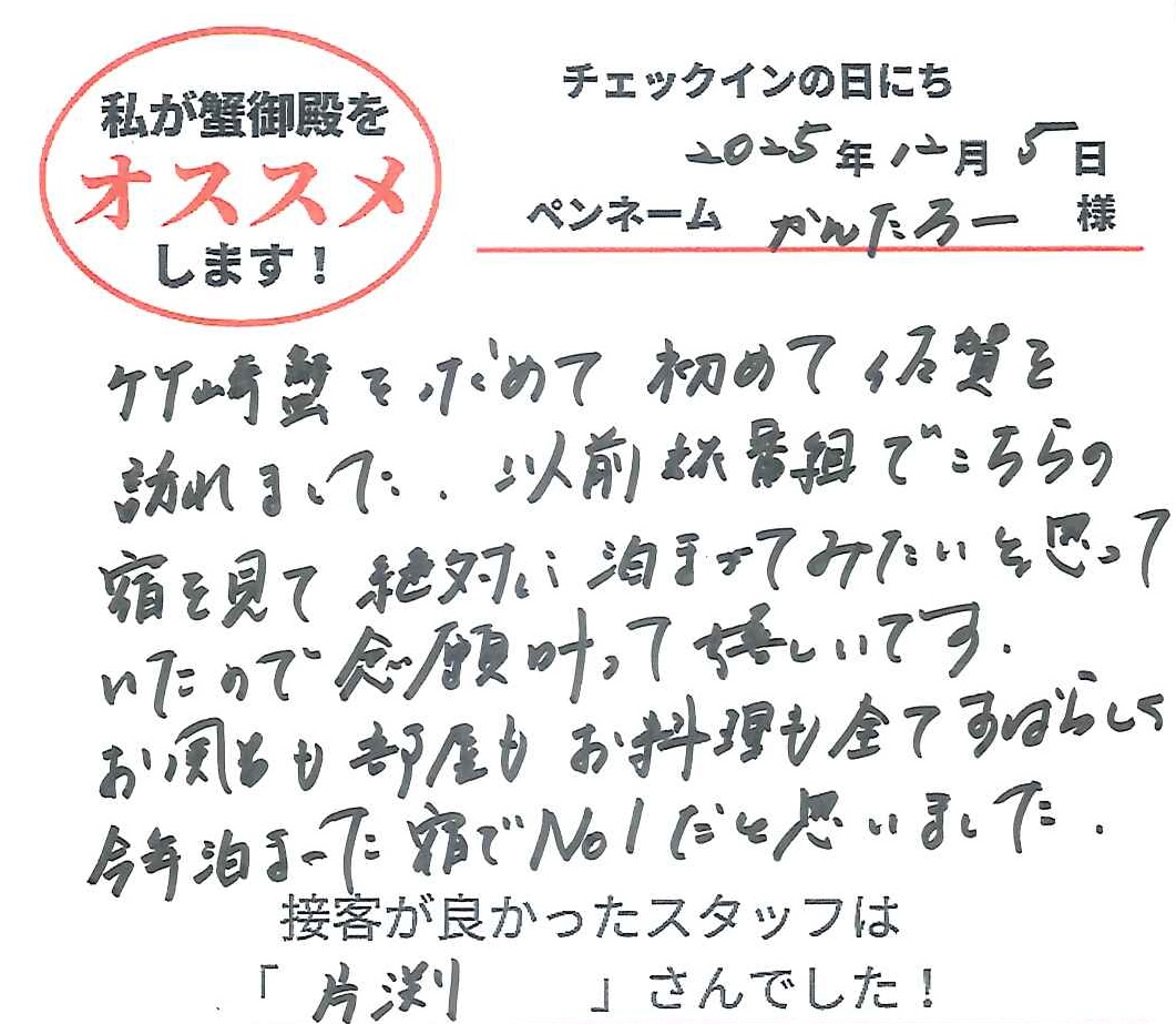 2025年12月5日ご宿泊 ペンネーム「かんたろー」様View More