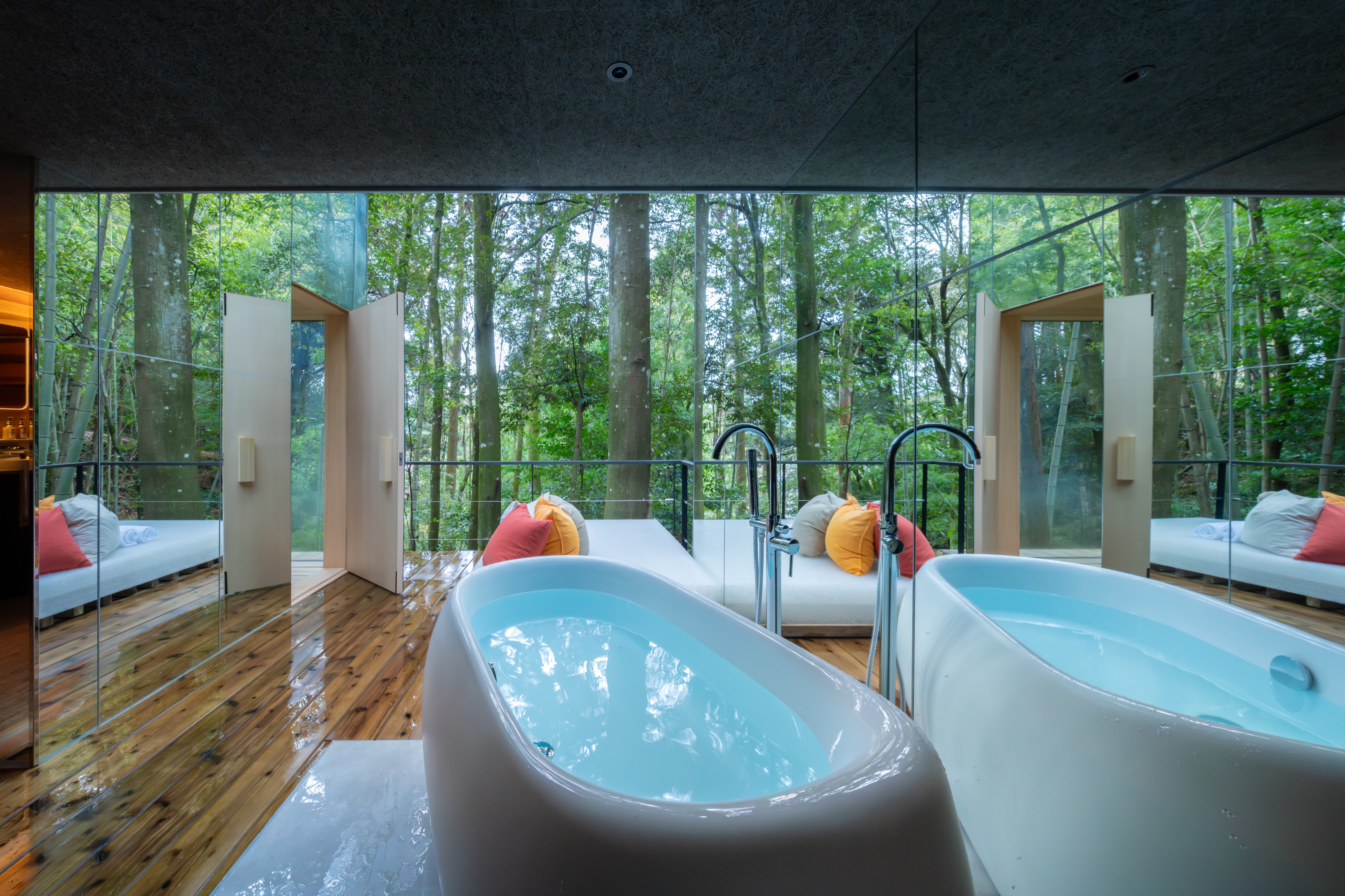 日中とはまた違った、森に溶け込むような深い“ととのい”の時間をお楽しみください。